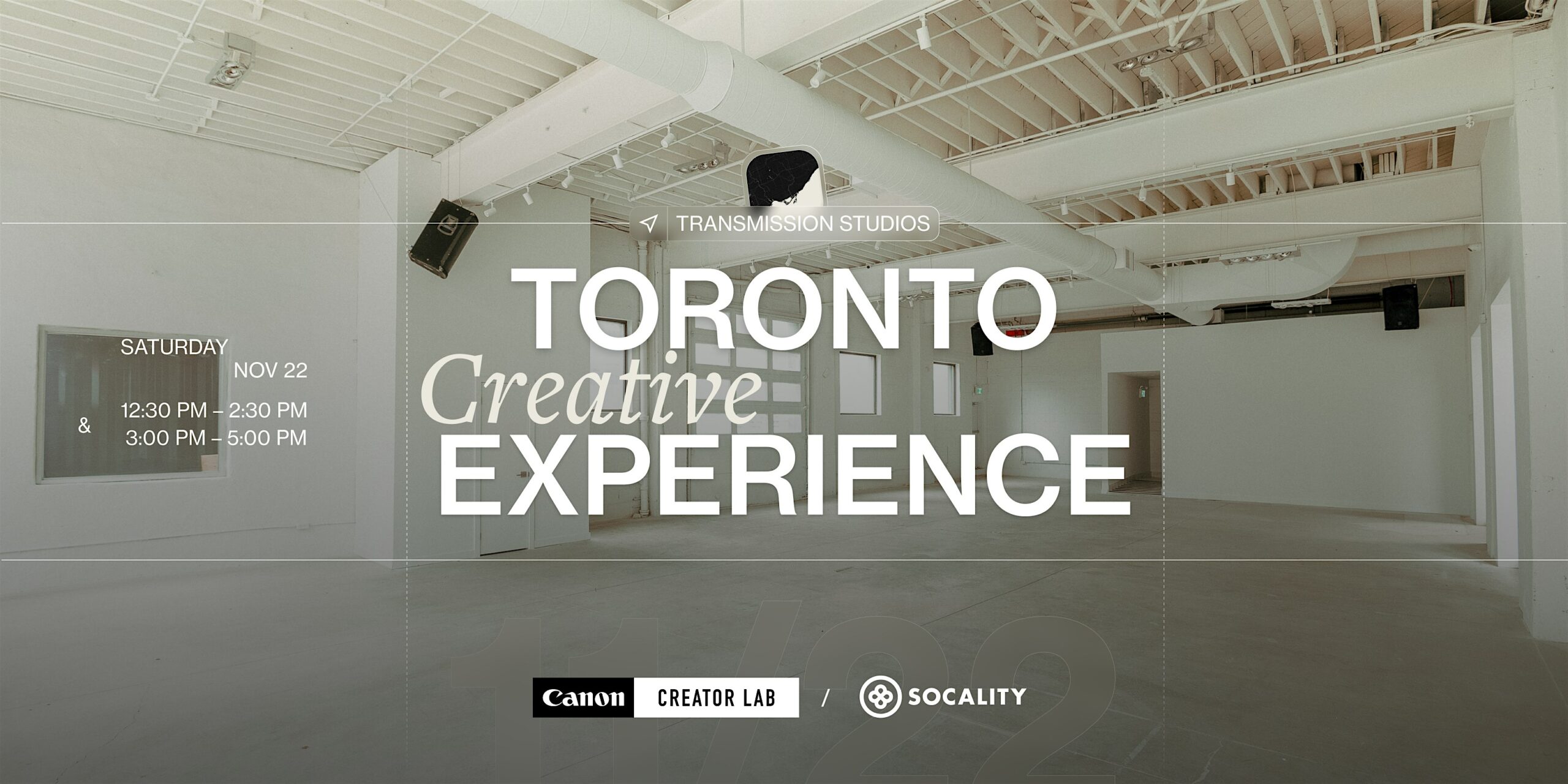 We’re thrilled to announce the Toronto Creative Experience at Transmission Studios—an immersive event designed to ignite your creativity and foster meaningful connections. Brought to you by Canon Creator Lab x Socality, this unique gathering at Transmission Studios brings together styled studio environments, creative sets, and hands-on experiences with Canon gear. Step into a space built for exploration and storytelling, where creators from across Toronto can connect, collaborate, and capture moments that inspire.